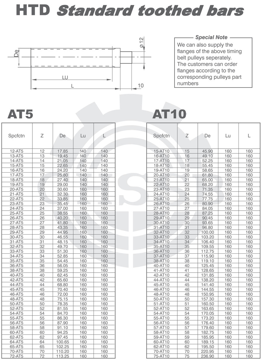 產品范圍: 美標/歐標:(AT5/AT10) 英制尺寸產品(適用于美標市場) 公制尺寸產品(適用于歐標市場) HTD齒棒、圓弧齒、STD同步帶輪、圓弧齒齒棒