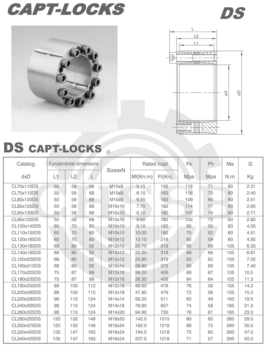 DS型脹套是D型脹套的改型,其尺寸系列相同,同規(guī)格的厚度比D型脹套短,傳遞的扭矩和軸向力也小,相當于短款的D型脹套。