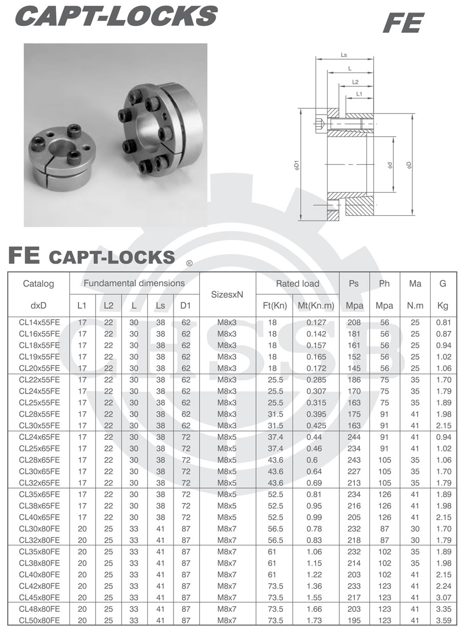 FE型脹緊聯結套由兩個帶錐面的內外環和相應壓緊螺釘組成,具有結構簡單,拆卸方便,低成本等特點。在壓